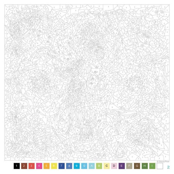 ontdek de magie van Disney in een betoverend kleurboek vol mandala's! laat je creativiteit leiden door het kleuren op nummer terwijl je stukje bij beetje de mmoiste Dinsey-heldinnen en magische scènes onthult.